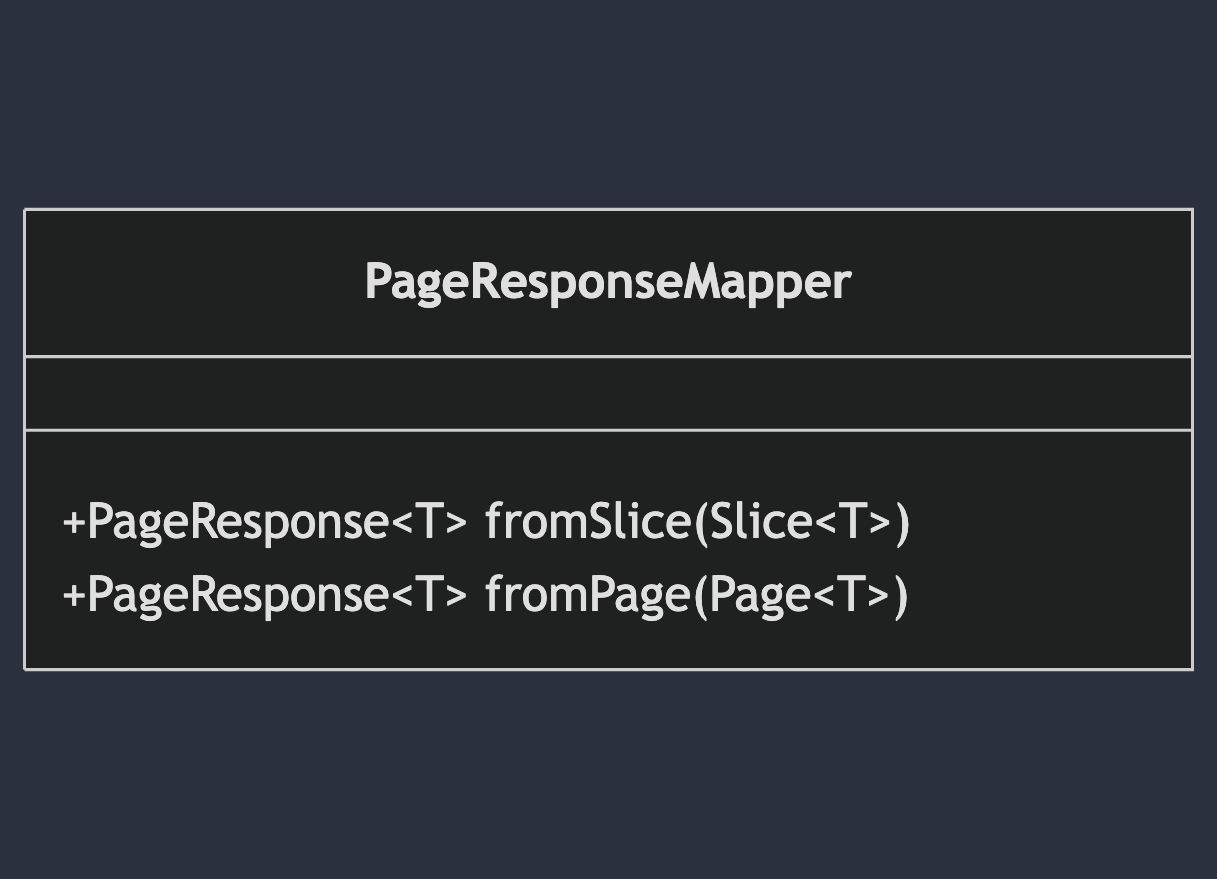- Slice ๋๋ Page ๊ฐ์ฒด๋ก๋ถํฐ DTO๋ฅผ ์์ฑํ๋ Mapper๋ฅผ ๊ตฌํํ์ธ์.